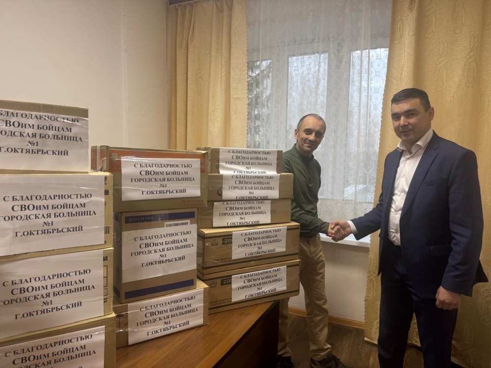 Главный врач Ильдар Гареев лично передал эту помощь, а руководитель АНО Волонтерской группы «Оберег» г. Октябрьский Константин Вельбой лично ее принимал.