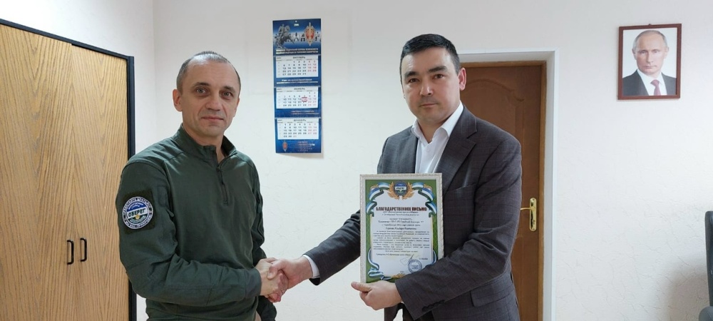 Константин вручил Благодарственное письмо коллективу Городской больницы №1 г. Октябрьский в лице главного врача Ильдара Гареева за активную благотворительную деятельность, направленную на помощь Вооруженным Силам Российской Федерации. Отметил доброту и искренность каждого сотрудника больницы и пожелал всем мирного неба.